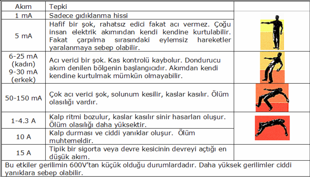 Tablodaki rakamlardan da görüldüğü üzere insan vücudu üzerinden geçen elektrik akımı 25mA’ten sonra ölümcül etki oluşturmaktadır. Bu nedenle tesiste, evde, elektriğin kullanıldığı her yerde kaçak akım koruma rölesi kullanılması son derece önemlidir. Uzman ekibimizle ile kaçak akım koruma rölesi devreye alma hizmeti vermekteyiz.